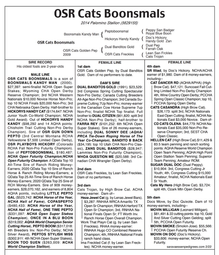 OSR CATS BOONSMALS – 2014 Stalliondescription Horses for Sale2025 Foals For Sale 2024 Foals for Sale 2023 Long Yearlings for Sale 2022 Horses For Sale – Sold Out! Riding Horses OSR Past Sales Reference Sires